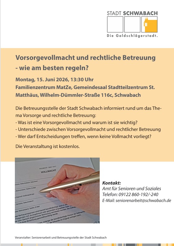 Vortrag: Vorsorgevollmacht und rechtliche Betreuung - wie am besten regeln?